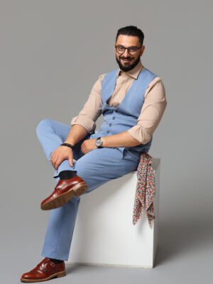 Poart-o cu pantaloni bleumarin sau gri pentru un look smart casual echilibrat. Adaugă sneakers pentru o ținută relaxată sau pantofi din piele pentru un aer elegant și rafinat.