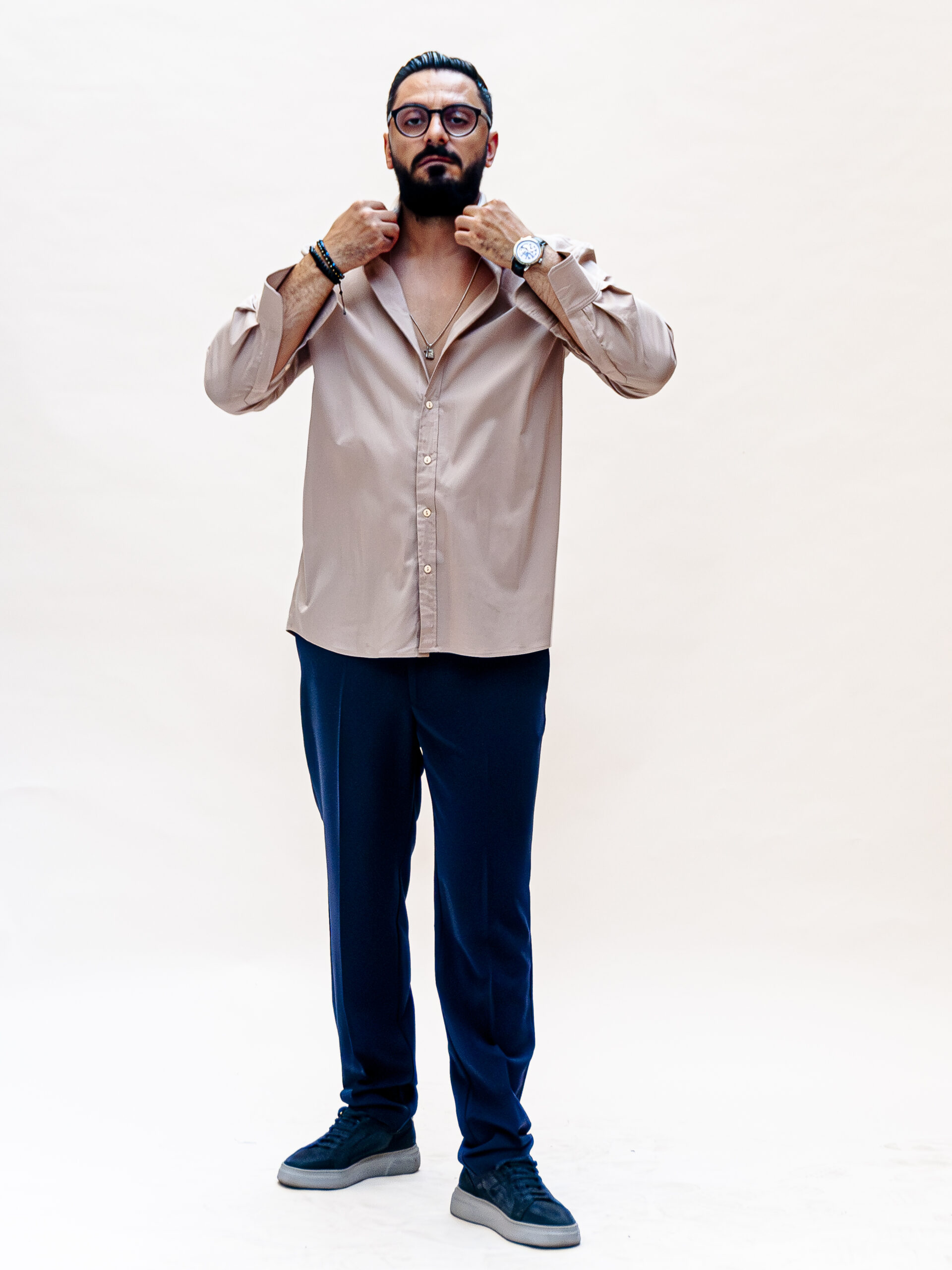 Un element de bază în garderoba masculină, această cămașă bej din bumbac 100% este concepută pentru bărbatul care apreciază simplitatea rafinată și confortul natural. Croiala clasică și culoarea neutră o fac ușor de integrat în multiple ținute, de la casual premium la smart casual.