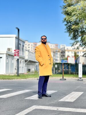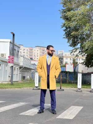 Un palton care redefinește prezența masculină. Croiala dreaptă, linia curată și nuanța intensă de galben-muștar transformă acest model într-o piesă statement. Realizat din stofă de lână cu densitate medie, oferă confort termic și o textură elegantă la atingere.