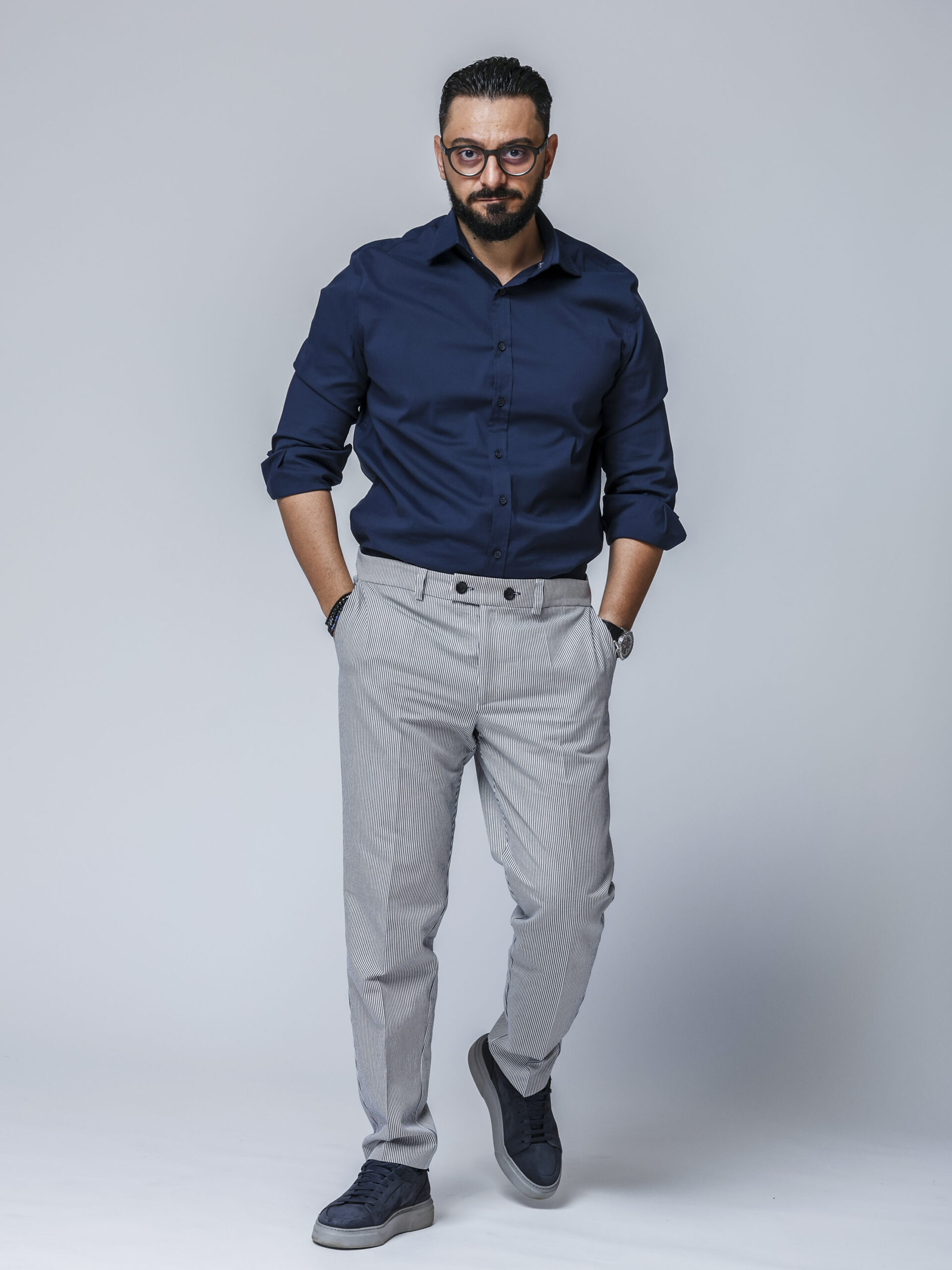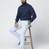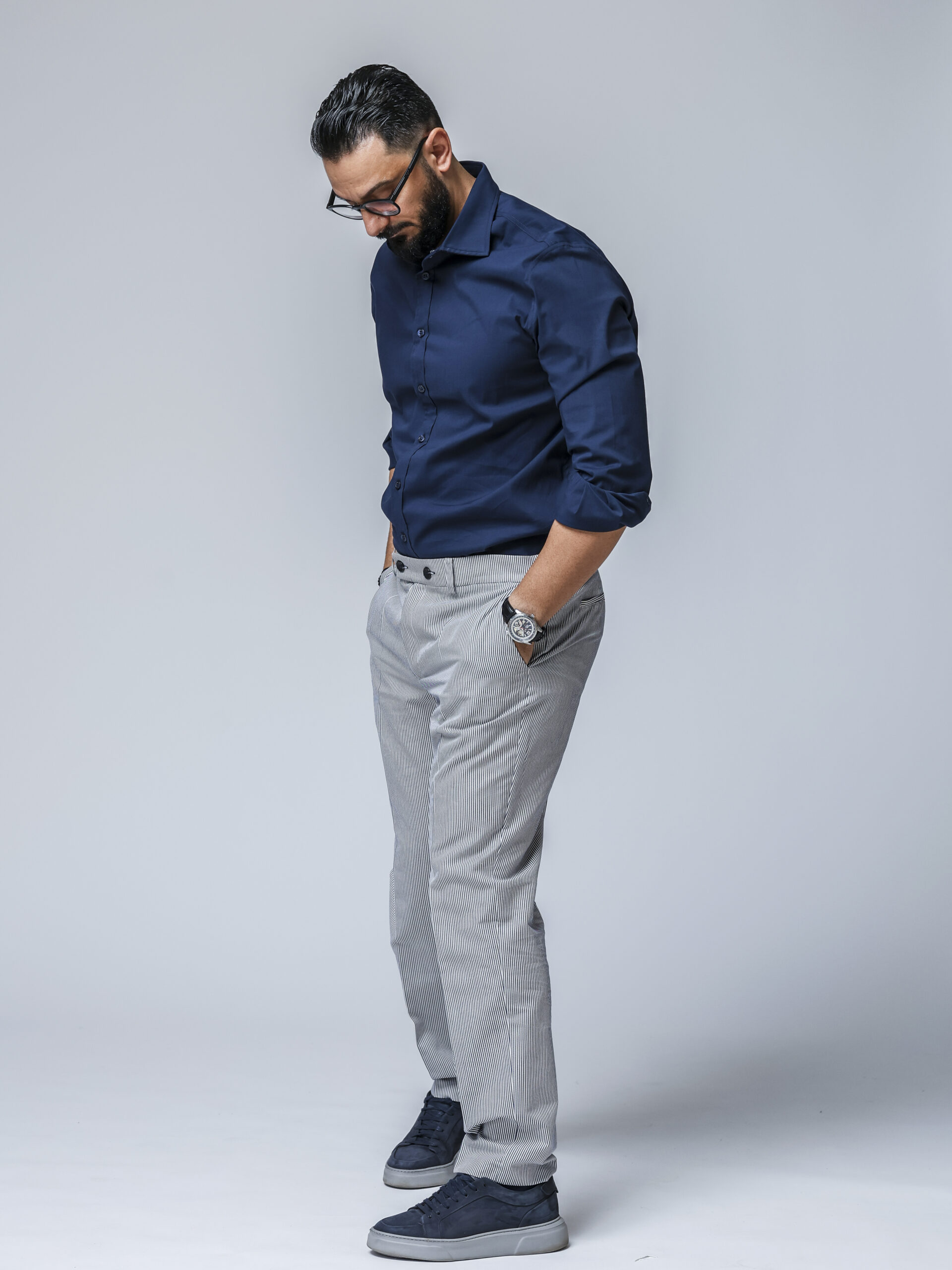 Poartă-i cu o cămașă bleumarin sau albă și sneakers pentru un look urban relaxat, ori cu loafers și o vestă într-o nuanță închisă pentru un smart-casual polished.