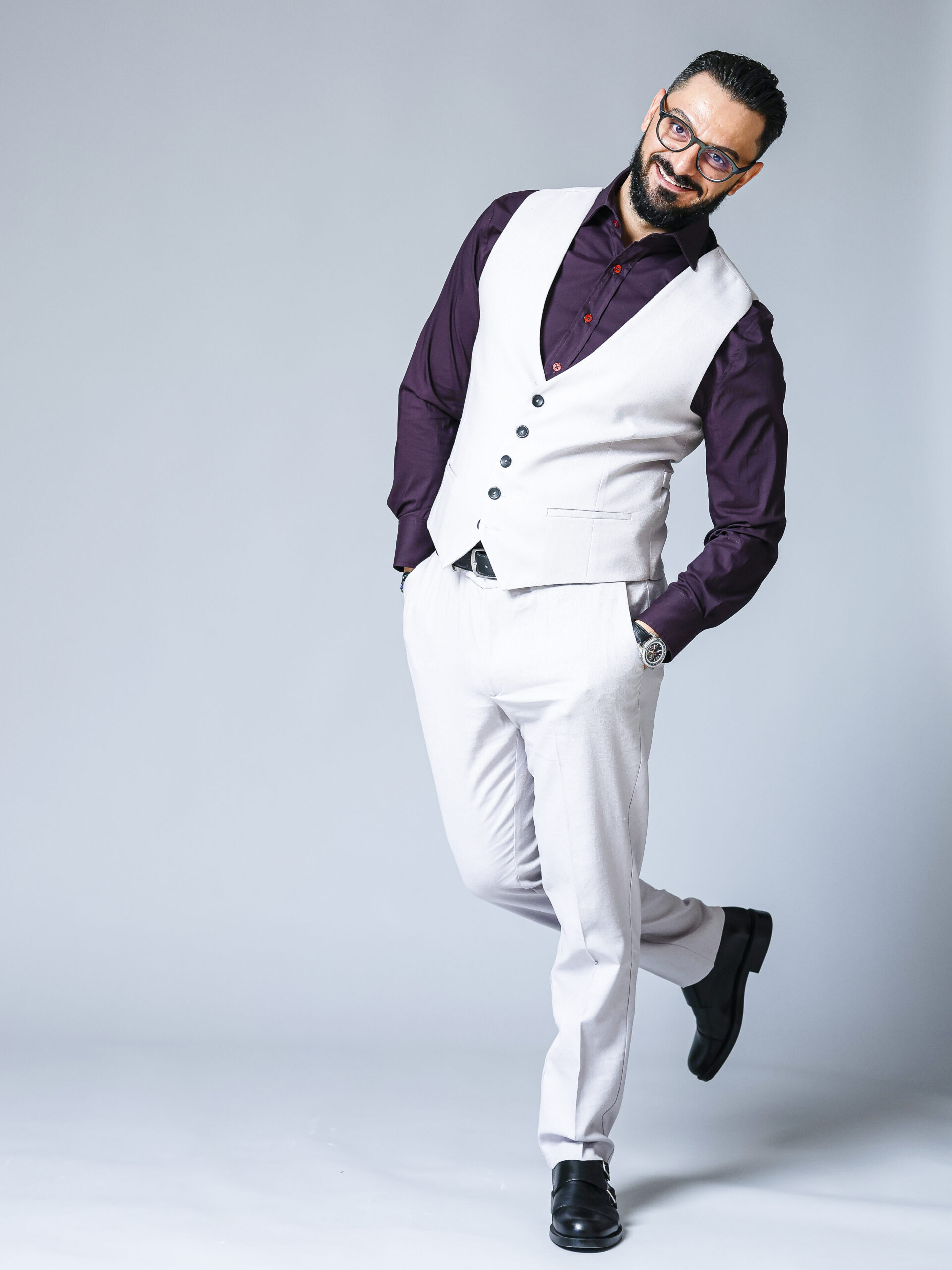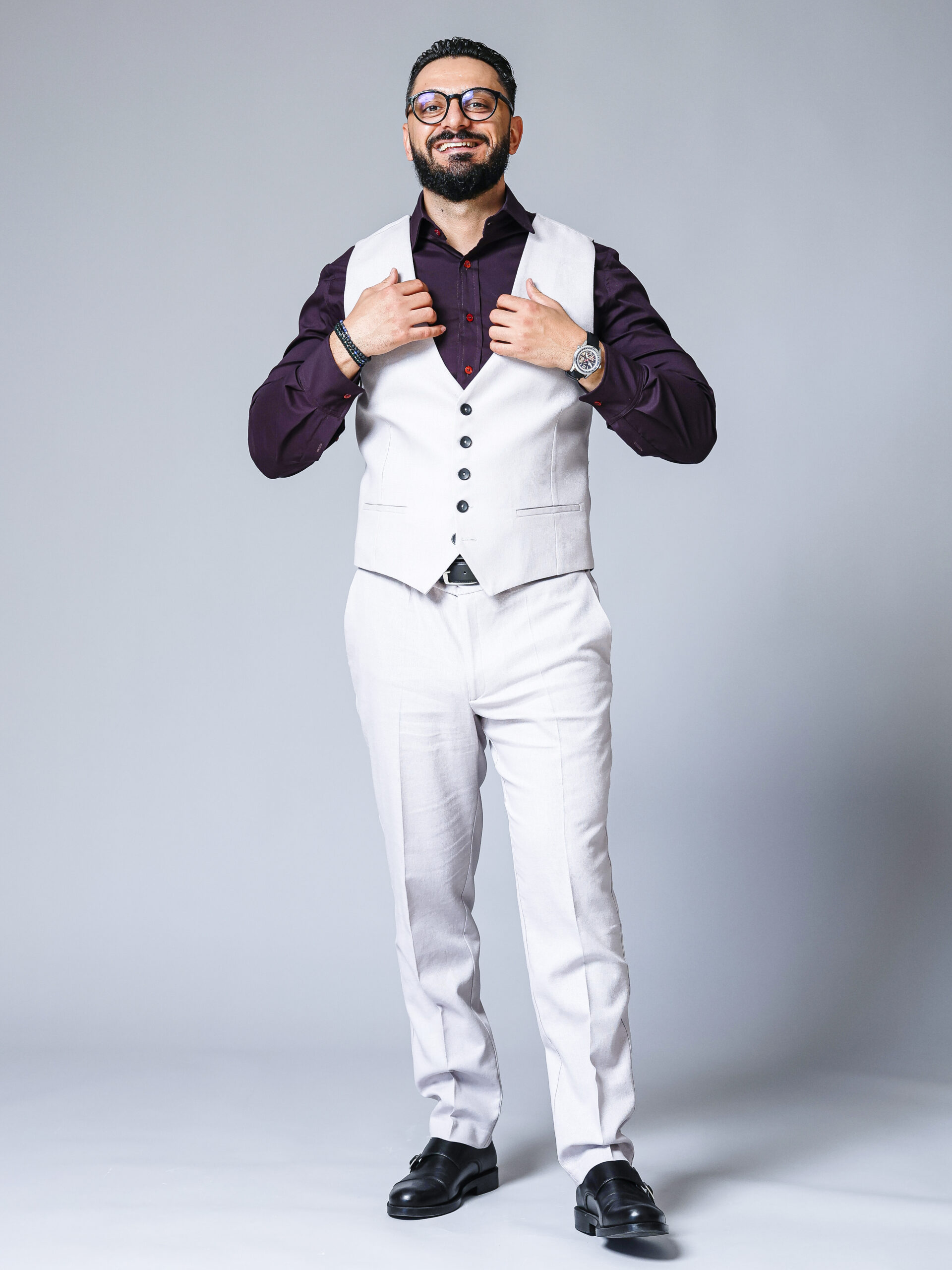 Poart-o ca în imagine cu o cămașă bordo și monk-straps negri pentru un contrast elegant. Pentru un aer business-relaxed, combin-o cu o cămașă albă, pantaloni în aceeași stofă și loafers maro.