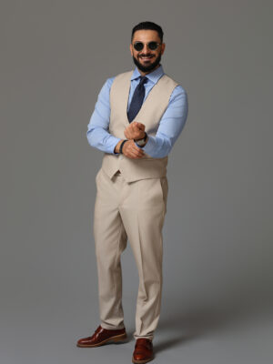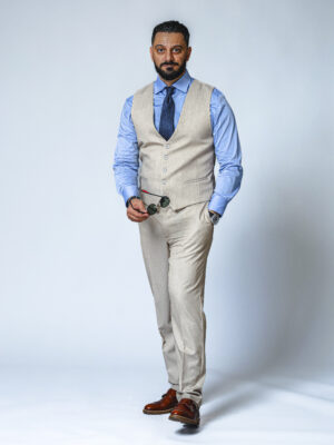 Vestă bărbătească din stofă bej nisipiu