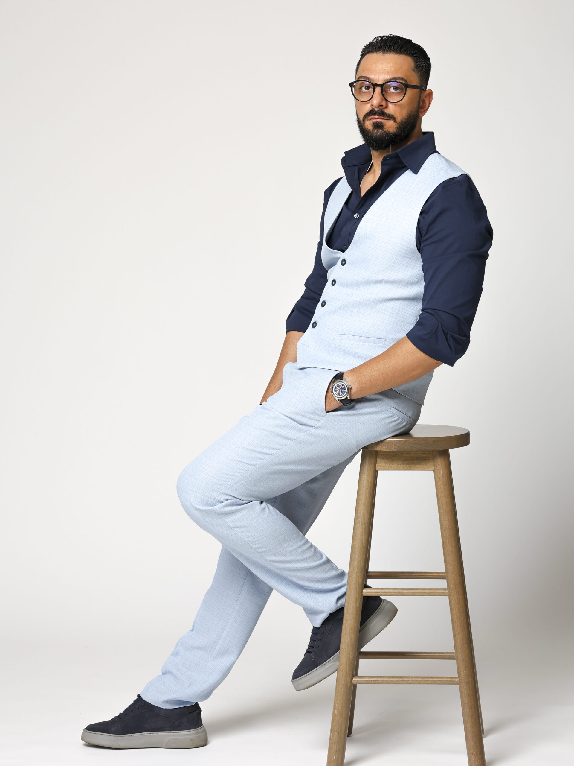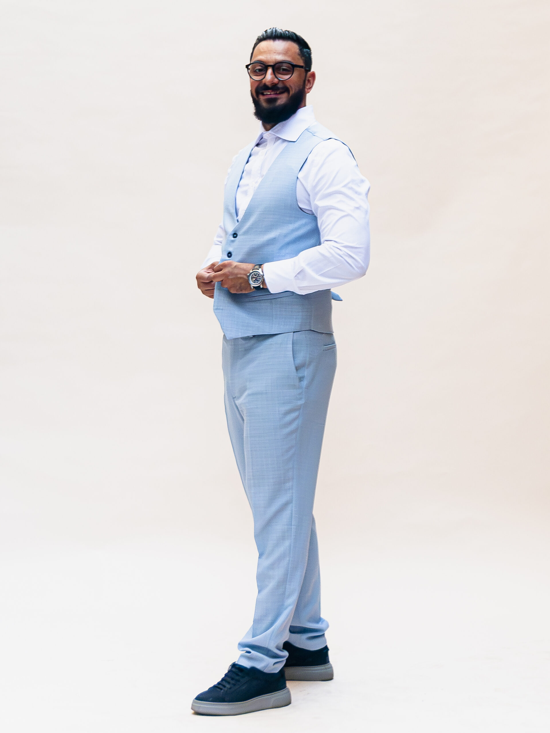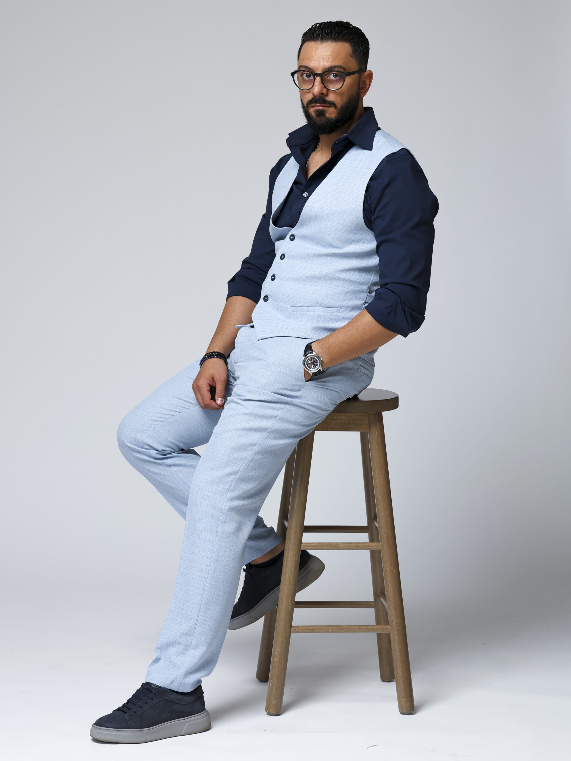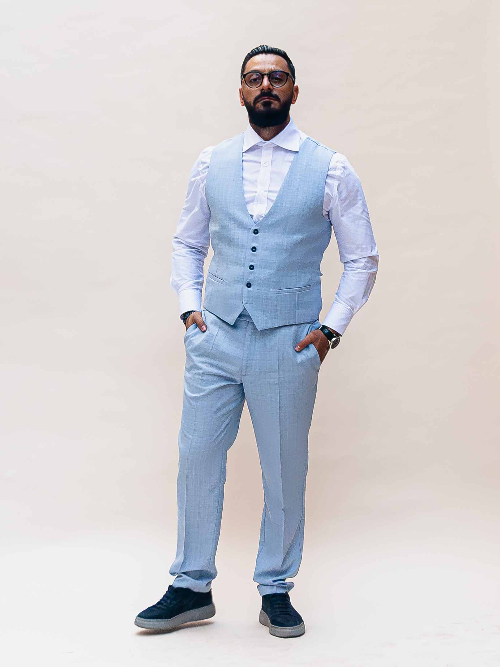 O piesă versatilă și elegantă, această vestă din stofă de calitate superioară este creată pentru bărbatul modern care apreciază rafinamentul discret. Modelul bleu cu carouri subtile adaugă un plus de textură și stil, fiind alegerea ideală pentru ținute smart casual sau elegante.
