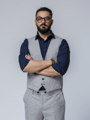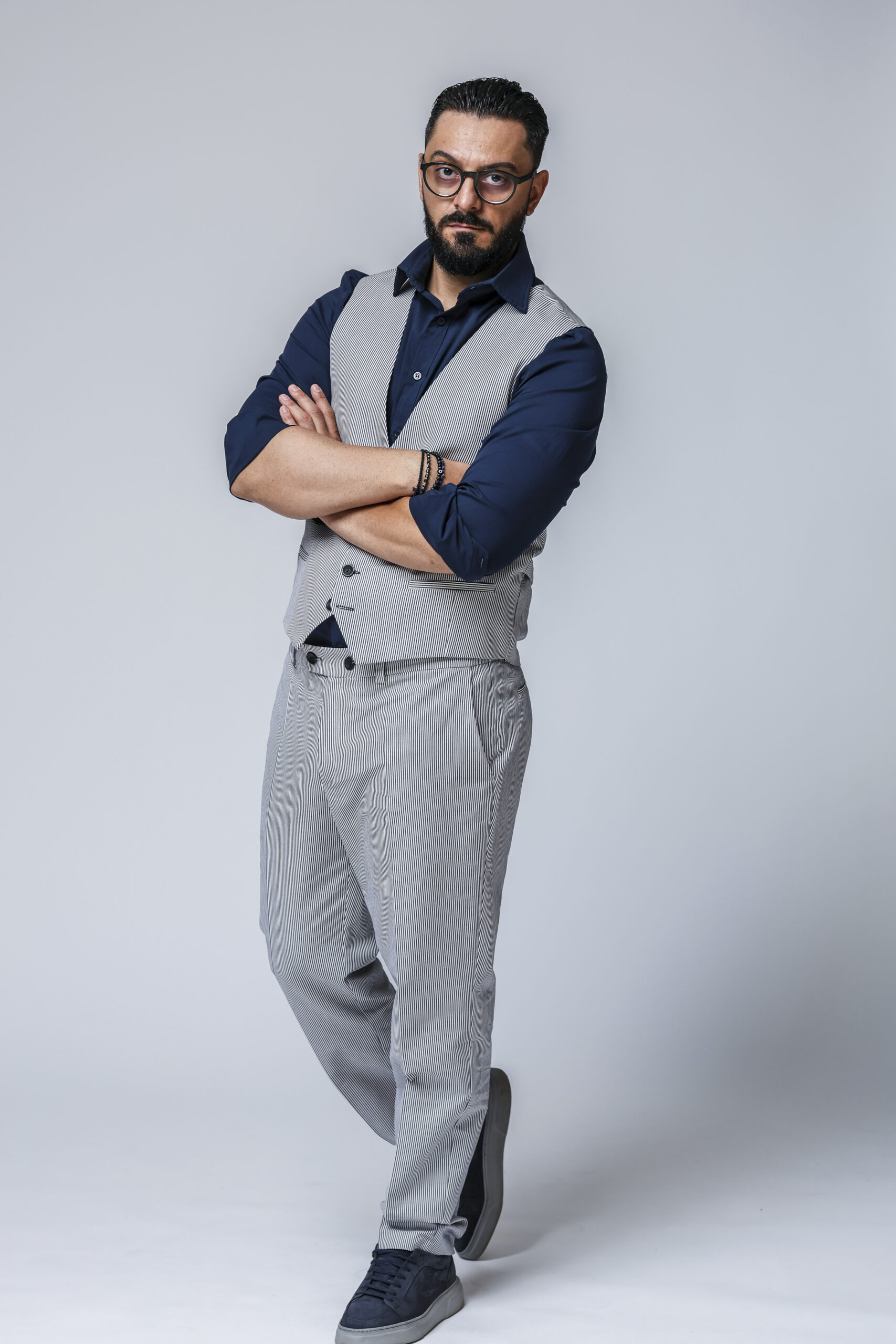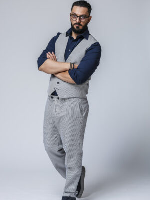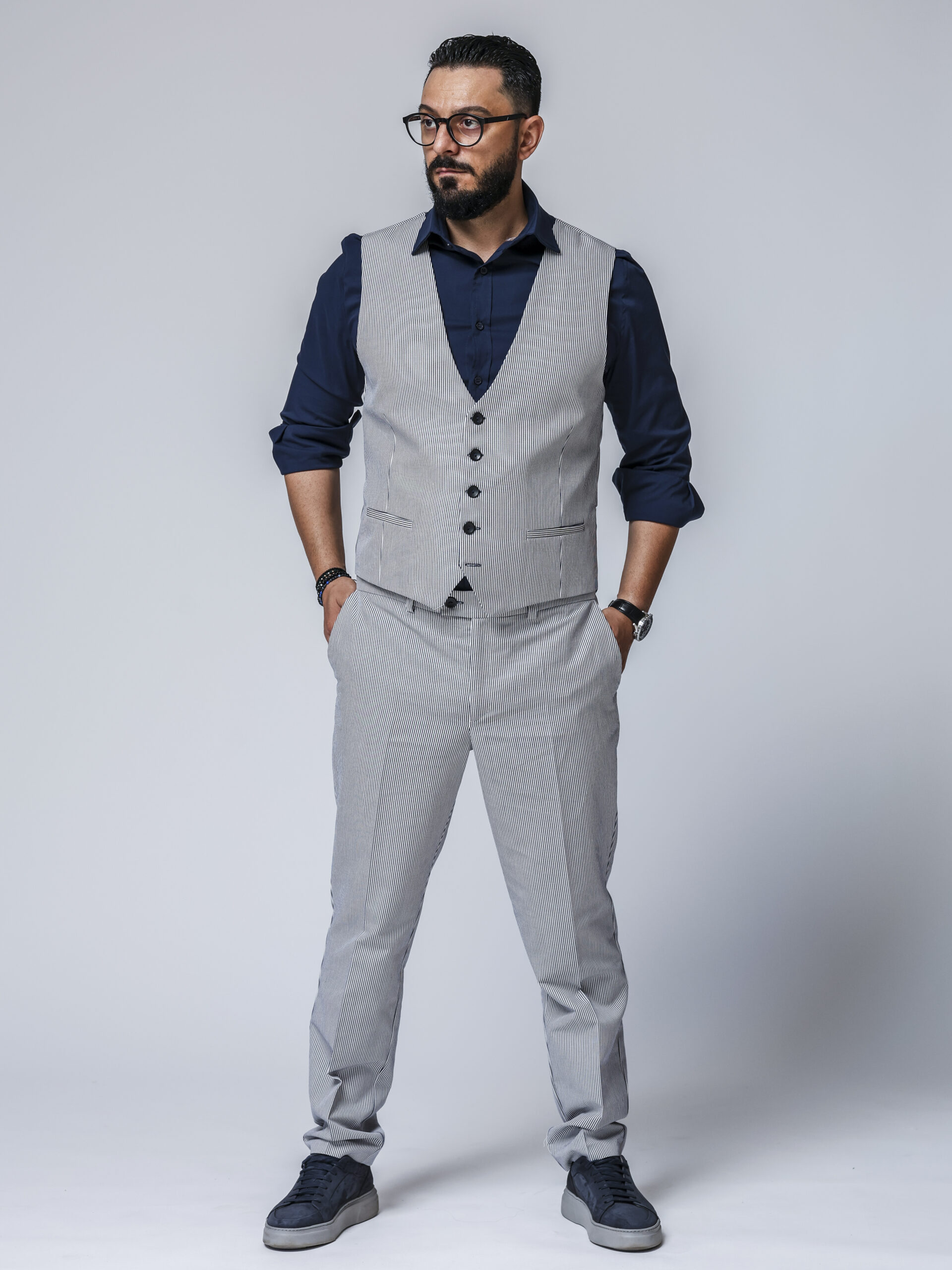 Vestă bărbătească din stofă de bumbac cu micro-dungi gri – Modern Gentleman