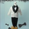 Papionul albastru din același material completează ansamblul cu o notă de eleganță și sofisticare. Croiala fină și materialul de cea mai bună calitate adaugă un plus de stil și distincție întregii ținute.