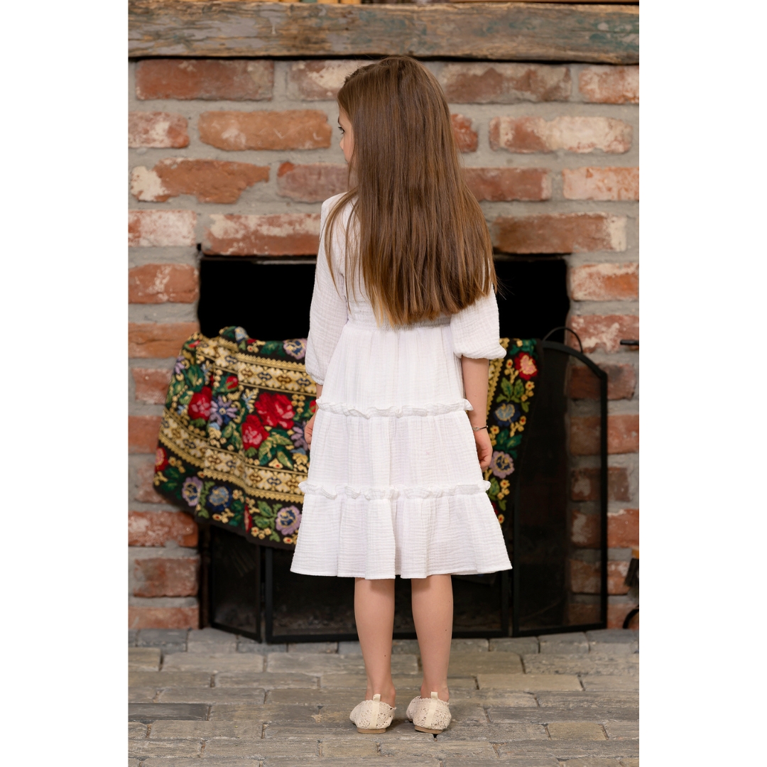 Rochița „Elena” îmbină puritatea albului cu farmecul tradiției, oferind o piesă de o eleganță subtilă și un rafinament aparte. Este realizată din muselină moale din bumbac, ideală pentru pielea delicată a celor mici și perfectă pentru zilele însorite sau evenimente speciale.